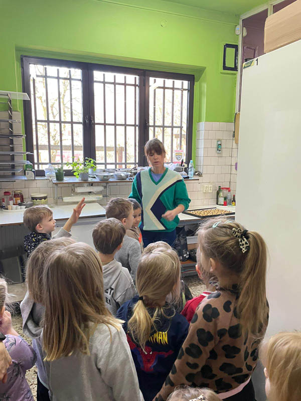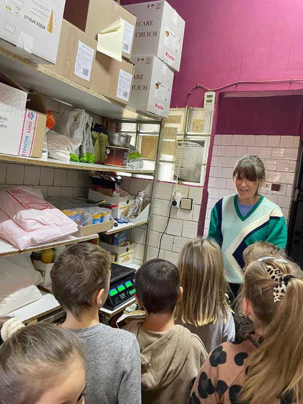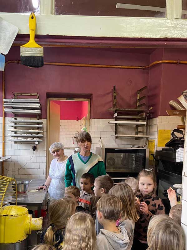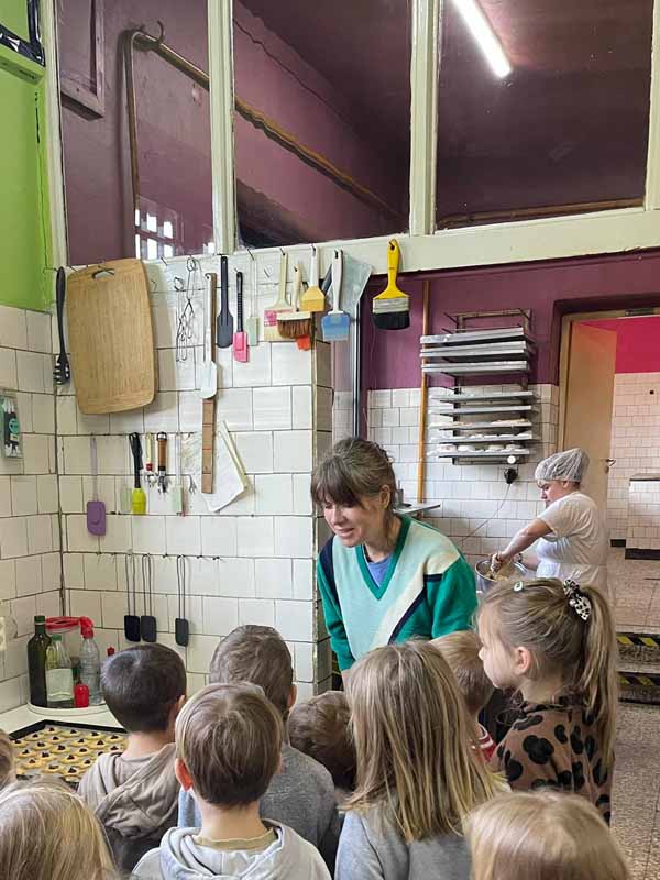 Kolejnym punktem naszej wycieczki było zwiedzanie. Dzięki uprzejmości gospodarzy, nasze „Zdolne Sówki” mogły zobaczyć cukiernię od kuchni. Była to fascynująca lekcja, ponieważ dzieci zobaczyły, jak krok po kroku powstają pyszne ciasta.